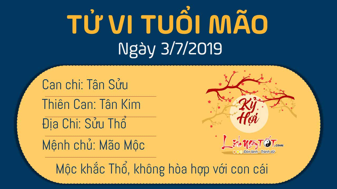 Mộc khắc Thổ, mối quan hệ giữa người tuổi Mão và con cái không mấy hòa hợp trong ngày hôm nay. Bạn có thể sẽ cảm thấy vô cùng nóng giận vì con cái không nghe theo lời mình. Bạn và người ấy cũng có thể xảy ra mâu thuẫn trong ngày vì có nhiều quan điểm không phù hợp với nhau. Bạn cần phải có suy nghĩ cởi mở hơn để lắng nghe những điều người ấy nói, đừng khư khư với ý kiến của mình. Tuy nhiên, Thiên Tài lại báo cho người tuổi này tin vui về tiền bạc. Bạn có thể là người may mắn phát tài rất nhanh vào ngày hôm nay.