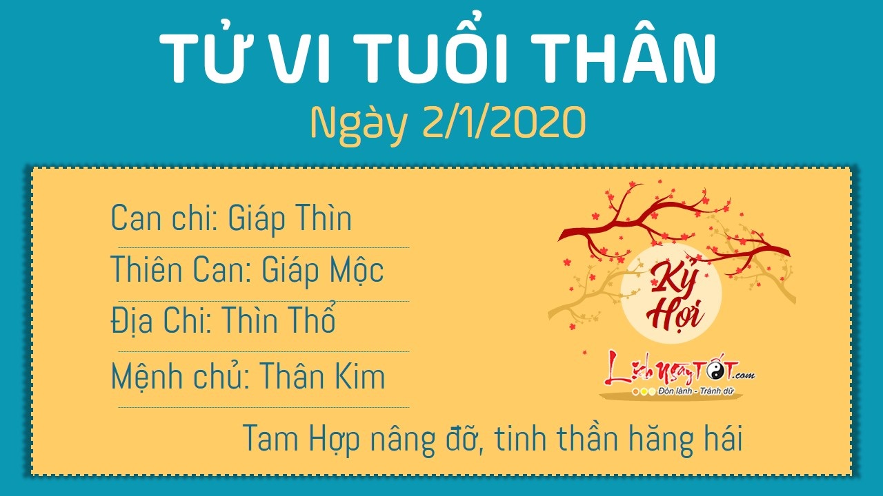 Tam Hợp sẽ phù trợ cho người tuổi Thân có một tinh thần hăng hái và nhiệt tình trong mọi việc. Dù công việc có khó khăn đến đâu, người tuổi Khỉ vẫn sẵn sàng kiên nhẫn thực hiện tới cùng. Tuy nhiên, đôi khi con giáp này lại có chút nóng vội mong ngóng kết quả quá sớm. Thiên Quan xuất hiện, đây là dấu hiệu nhắc nhở bản mệnh nên cẩn trọng bởi có kẻ tiểu nhân đang nhòm ngó và sẽ ngáng chân bạn bất cứ lúc nào để cướp lấy vị trí của bạn. Thổ sinh Kim, dù công việc bận rộn đến mấy bạn cũng cần thường xuyên rèn luyện thân thể để có một cơ thể khỏe mạnh. Cứ ngồi lì một chỗ rồi cặm cụi với máy tính ngày này qua ngày khác chỉ khiến cơ thể bạn trì trệ và mắc nhiều căn bệnh về xương khớp.