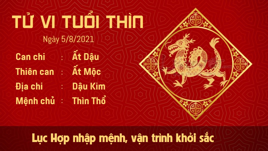 Tuổi Thìn có Lục Hợp quý nhân ở bên nâng đỡ nên vận trình hôm nay có phần khởi sắc hơn. Công việc thuận lợi, kế hoạch mà bản mệnh đưa ra được tiến hành vô cùng suôn sẻ. Những bước tiến tuy chậm mà chắc là điều mà những chú Rồng đã lên kế hoạch trước cho mình. Chính Tài cho thấy những nỗ lực trong công việc mang về thu nhập ổn định cho con giáp này. Bản mệnh biết cách vun vén chi tiêu khéo léo nên cũng không gặp phải nhiều vấn đề về tài chính. Ngày 5/8/2021 tức ngày 27/6 âm lịch, ngày 27 âm lịch nhân thần ở phía trong khớp cổ chân, khí xung và xương bánh chè, bạn nên tránh mọi sự tổn thương, va chạm, mổ xẻ, châm chích tại vị trí này.