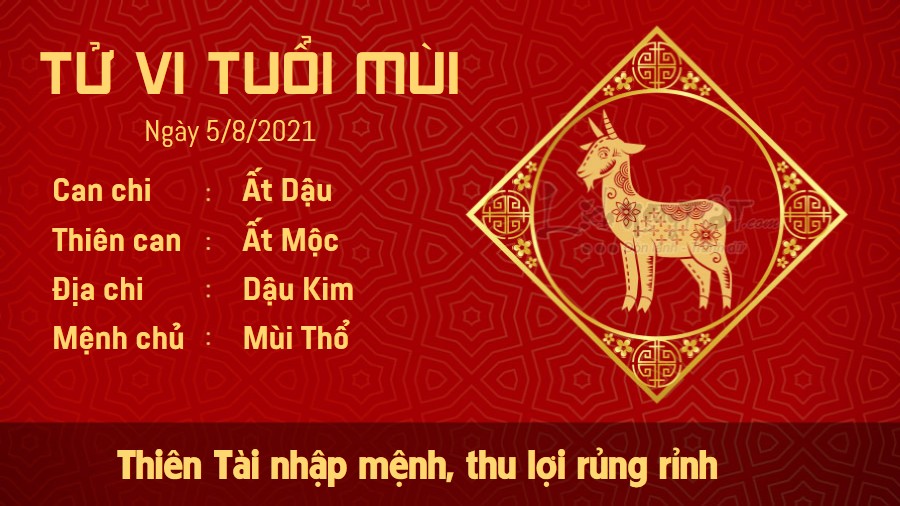 Thiên Tài tương hỗ nên người tuổi Mùi dễ dàng hơn trong việc kiếm tiền. Ngày này bạn thu lợi từ nhiều nguồn khác nhau, tài lộc vượng phát, làm ăn có lãi. Nhìn chung mọi việc trong ngày dù lớn hay nhỏ, hễ liên quan tới tài chính là bản mệnh cầm chắc phần thắng trong tay. Phương diện tình cảm cũng không mấy êm ả khi tình duyên khá lận đận. Người đến rồi lại đi khiến bạn liên tục cảm thấy cô đơn và hụt hẫng. Có lẽ đây chưa phải là thời điểm thích hợp, bạn nên dứt khoát hơn trong chuyện tình cảm và tập trung vào con đường sự nghiệp của mình thì hơn. Thai thần ở hướng Tây Bắc phía ngoài phòng giã gạo, nơi xay bột và cửa phòng thai phụ, không nên dịch chuyển tránh làm động Thai thần.