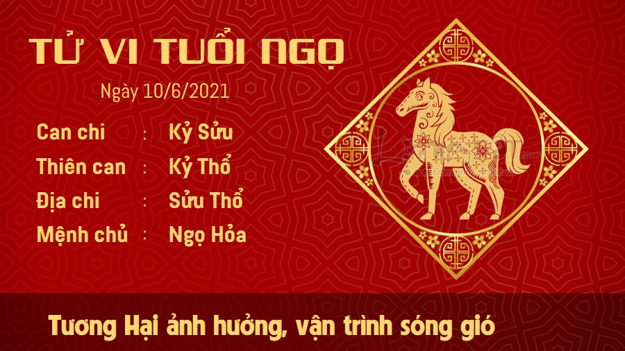 Tương Hại gây nên không ít sóng gió cho vận trình của người tuổi Ngọ. Công việc ở thời điểm này không có nhiều điều khởi sắc. Mọi chuyện gần như đi vào bế tắc, không có gì biến chuyển khiến cho bạn dần mất đi hứng thú làm việc. Do sự nghiệp không thuận nên tài lộc của những chú Ngựa trong ngày này cũng không tốt lắm. Những hiểm họa bất ngờ có thể xảy tới bất cứ lúc nào khiến tiền bạc hao hụt nhanh chóng, đòi hỏi bản mệnh phải cẩn trọng và đề cao cảnh giác trước các quyết định tài chính, chớ nên vội vàng tin tưởng lời mời gọi đầu tư quá dễ dàng. May là ngày hôm nay là sức khỏe tốt, tình cảm hài hòa nhờ có ngũ hành tương sinh che chở.