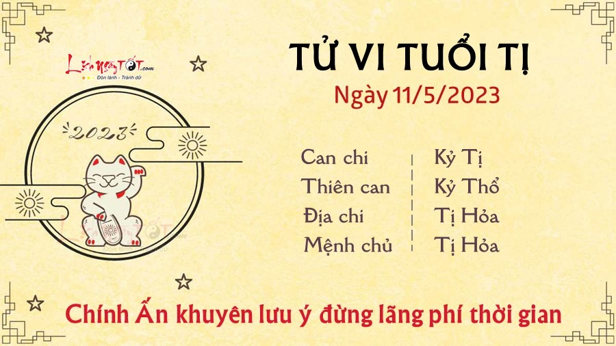Chính Ấn khuyên con giáp tuổi Tị nên lưu ý đừng lãng phí thời gian vào những công việc vô bổ, chỉ nên tập trung vào những việc tạo ra giá trị mà thôi. Hứa hẹn nhiều người có cơ may ký kết được hợp đồng quan trọng, do đó nhớ chuẩn bị mọi thứ thật chu đáo nhé. Mọi sự kiện diễn ra hôm nay có tốt đẹp hay u ám như thế nào đều phụ thuộc vào tâm trạng của bản mệnh. Nếu bạn đang vui, mọi thứ xung quanh bạn đều vô cùng tươi đẹp. Việc ăn uống thoải mái trong thời gian vừa qua khiến bạn dễ mắc bệnh, không nên chủ quan, nếu cảm thấy bất ổn thì nên khám chữa sớm. Ngoài ra, bản mệnh cũng nên tập trung vào kế hoạch cải thiện sức khỏe cho bản thân càng sớm càng tốt nhé.