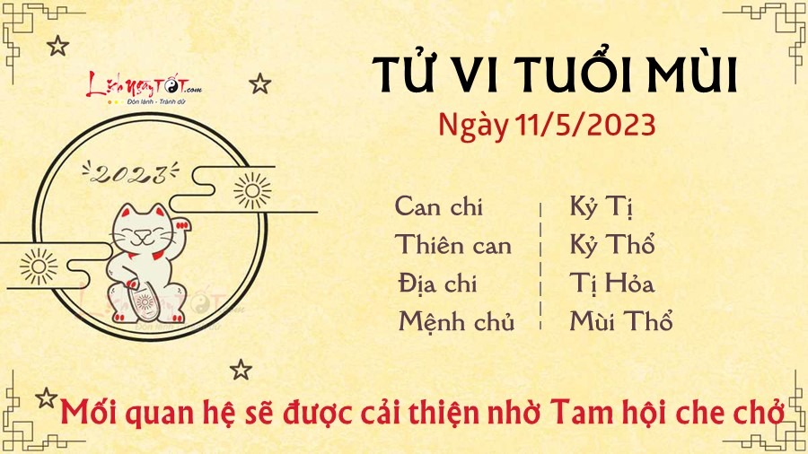 Mối quan hệ của bạn với người thân trong gia đình sẽ được cải thiện tốt trong ngày Tam hội che chở, đem lại cho bạn những cảm xúc tích cực. Ngoài ra cơ hội để bạn hợp tác làm ăn trong thời gian này cũng đã xuất hiện nhiều hơn, bạn tha hồ mà lựa chọn. Ảnh hưởng của Tỷ Kiên nên một số việc của tuổi Mùi lúc này bị đình trệ. May mắn là sự thay đổi thất thường của bạn sẽ chấm dứt nếu bạn có được những lời nhắc nhở, cho dù khi mới nghe nó bạn cảm thấy bực mình. Đây là lúc bạn cần trở lại là chính mình để giải quyết hàng đống rắc rối xảy ra. Chỉ có như thế bạn mới có được giấc ngủ ngon, không còn phải lo lắng, vướng bận điều gì cả.