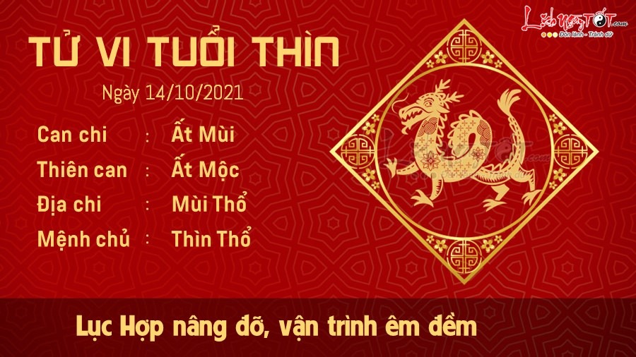 Lục Hợp xuất hiện mang tới cho tuổi Thìn những niềm vui và cả sự may mắn khi mọi chuyện đều diễn ra êm đềm. Công việc của bản mệnh vô cùng thuận lợi, được nhiều người giúp đỡ từ góp sức cho đến lời khuyên, kinh nghiệm để hoàn thành mọi nhiệm vụ. Chính Tài tiếp sức, con giáp này sẽ thu hoạch được những thành quả to lớn, hoàn toàn xứng đáng với công sức đã bỏ ra. Nhưng dù tiền bạc dư dôi đến đâu, bạn cũng nên có kế hoạch chi tiêu hợp lý, còn nhiều chuyện phải chi tiêu sau này nên cần có kế hoạch tích lũy ngay từ bây giờ. Ngày Thổ vượng có thể gây ra một số triệu chứng khó chịu cho tuổi Thìn như đau đầu, uể oải, kém ăn…