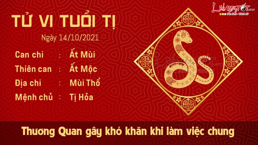 Thương Quan có thể là nguyên nhân khiến tuổi Tị gặp không ít khó khăn khi làm việc chung với người khác trong hôm nay. Khi kết hợp với người khác bạn khó tìm được sự hòa hợp, bình thường nếu làm việc độc lập bạn rất xuất sắc nhưng khi kết hợp với người khác thì lại hoàn toàn chìm nghỉm. Cái bạn đang thiếu chính là sự khéo léo để mối quan hệ với đồng nghiệp hài hòa hơn, có lẽ bớt đi một chút cái tôi thì mọi chuyện sẽ dễ dàng hơn. Hỏa sinh Thổ bù lại cho những chú Rắn chuyện tình cảm êm đẹp như được chắp thêm đôi cánh giúp bay cao, bay xa hơn nữa. Hai người thực sự yêu thương và muốn chung sống bên nhau, dành cho nhau cuộc sống hạnh phúc như mong muốn.