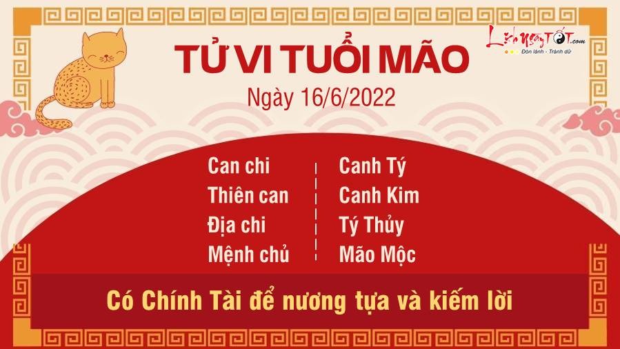 Người tuổi Mão có Chính Tài để nương tựa nên tự tin với các kế hoạch kinh doanh kiếm lời của mình. Không ít người gặt hái thành công trong ngày hôm nay. Ngũ hành tương sinh cho thấy tín hiệu tích cực về khía cạnh sức khỏe của bản mệnh, nhiều người mắc bệnh nay tìm thấy tia hi vọng mới để bạn tiếp tục đối mặt với bệnh tật. Bên cạnh đó, nhiều người tìm ra lối ăn uống phù hợp với thể trạng của mình và dần thay đổi cho đúng hướng. Ảnh hưởng của Hình hại vô lễ khiến con giáp tuổi Mão khó kiểm soát được sự nóng giận. Lòng tự tôn khiến bạn không cho phép ai đó thể hiện sự thiếu tôn trọng mình.