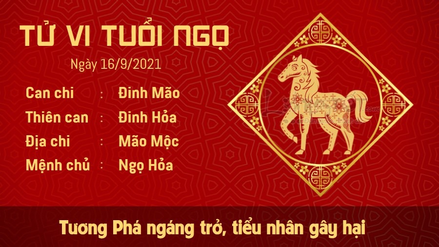 Cục diện Tương Phá nhắc nhở tuổi Ngọ làm gì cũng phải thận trọng bởi bạn đang có nguy cơ bị tiểu nhân gây hại, gièm pha nói xấu, làm ảnh hưởng tới danh dự. Mặc dù ban đầu chỉ là chuyện nhỏ nhưng con giáp này thiếu sự đề phòng sẽ khiến mọi chuyện diễn tiến theo chiều hướng xấu hơn. Mối quan hệ với đồng nghiệp trong hôm nay cũng không được suôn sẻ. Con giáp này tuy mạnh mẽ, có chí hướng và năng lực nhưng đôi khi lại quá hiếu thắng, thích chiếm vị trí tiên phong mà không quan tâm đến cảm nhận của những người xung quanh. Ngũ hành tương sinh cho thấy dường như nỗ lực của bạn đã được đền đáp khi chuyện tình cảm đã đi đúng hướng hơn.
