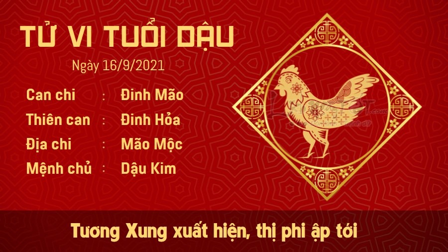 Chịu tác động từ Tương Xung Thái Tuế, tuổi Dậu có thể sẽ gặp phải khá nhiều vấn đề trong công việc ngày hôm nay. Hung vận xuất hiện kéo theo họa thị phi, con giáp này chẳng làm gì những vẫn bị làm bia đỡ đạn bởi những lỗi lầm không phải do mình. Bản mệnh vẫn nên nhẫn nhịn một chút để tránh xảy ra tranh cãi. Ngày này vận trình tình cảm không được suôn sẻ cho lắm do ngũ hành xung khắc, nhất là với người còn độc thân. Con giáp này muốn tìm kiếm tình yêu cho mình nhưng rồi lại lo sợ bản thân sẽ bị tổn thương, bị phản bội nên cứ ngập ngừng mãi thôi. Bù lại, Thiên Tài độ mệnh, một vài khoản thu nhập có dấu hiệu tăng tiến, đặc biệt là nghề tay trái hoặc đầu tư nhỏ lẻ.