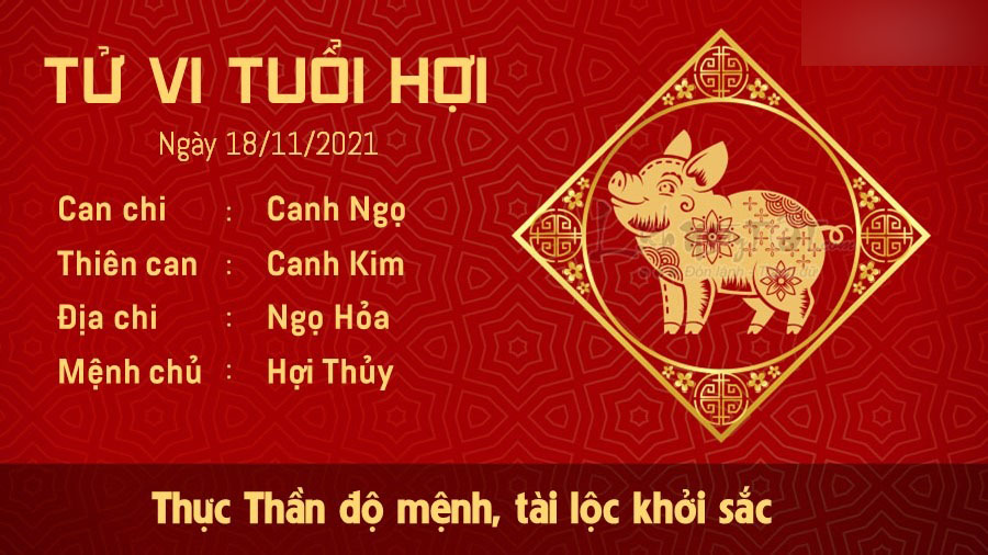 Thực Thần nhập cục giúp đường tài lộc của tuổi Hợi có phần khởi sắc, bản mệnh biết cách làm những gì để có nguồn thu nhập tốt hơn và giờ là lúc được hưởng thành quả cho những cố gắng của mình. Nhân lúc tài chính đang dư dả, bạn nên chi tiêu thông minh và có kế hoạch rõ ràng và hợp lý để sau này không phải lo lắng quá nhiều vì vấn đề tiền bạc nữa. Dành dụm một khoản đảm bảo cho tương lai, khi đó bạn sẽ có tự tin để theo đuổi đam mê mà mình muốn và không lo bị bất cứ điều gì cản bước nữa. Thủy – Hỏa bất dung, điều này có thể khiến Hợi cảm thấy chút muộn phiền trong chuyện tình cảm. Nguyên nhân là do bản mệnh chưa xác định rõ tình cảm của mình, dễ bị người ngoài tác động nên mọi thứ lấp lửng chẳng đi tới đâu. Dường như bạn đang đánh mất sự bình tĩnh và cảm thấy lo lắng về tương lai.