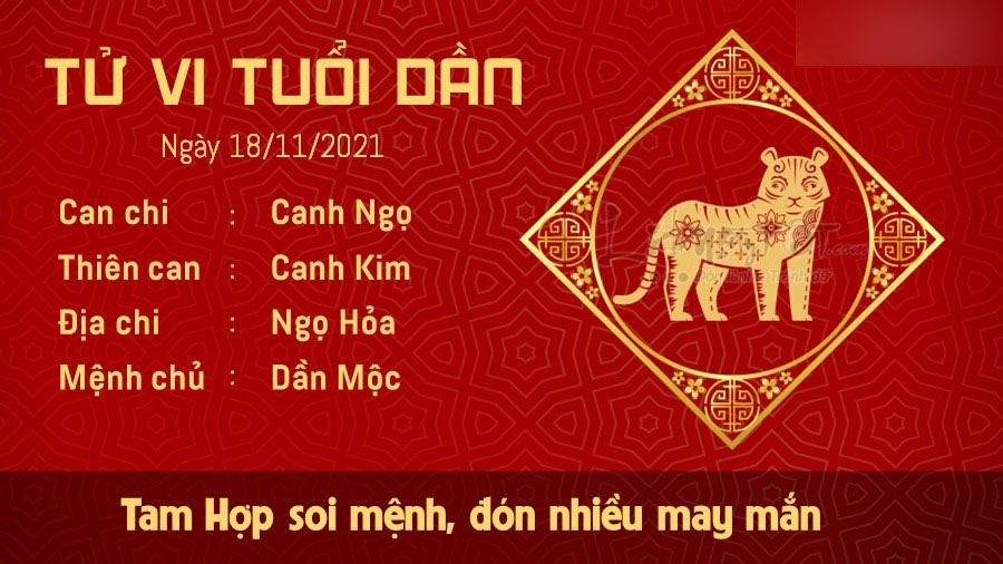 Tam Hợp che chở cho vận trình tử vi hôm nay của người tuổi Dần hứa hẹn những điều may mắn sẽ đến với bản mệnh. Bạn có thể tranh thủ thời gian này để xúc tiến những kế hoạch mà bản thân đã mong muốn thực hiện từ lâu. Miễn là bạn đã căn cứ vào tình hình thực tế để đưa ra kế hoạch thì không có gì phải lo lắng. Túi tiền của con giáp này cũng vô cùng rủng rỉnh trong ngày thứ 5 này do có Thiên Tài ghé thăm. Đường tài lộc đang rất hanh thông, bạn bất ngờ được cho tiền hoặc nhận được những khoản lợi nhuận lớn, có thể là do những dự án đầu tư trước đây đang bắt đầu thu lợi. Ngũ hành tương sinh cho thấy vận đào hoa của Dần có dấu hiệu tăng, bạn có nhiều “vệ tinh” xoay quanh. Tuy nhiên, do đây là mối quan hệ sinh xuất nên đào hoa quá vượng lại có thể không phải là chuyện tốt. Lắm mối tối nằm không, bạn vẫn chưa thật sự tìm ra người thích hợp.