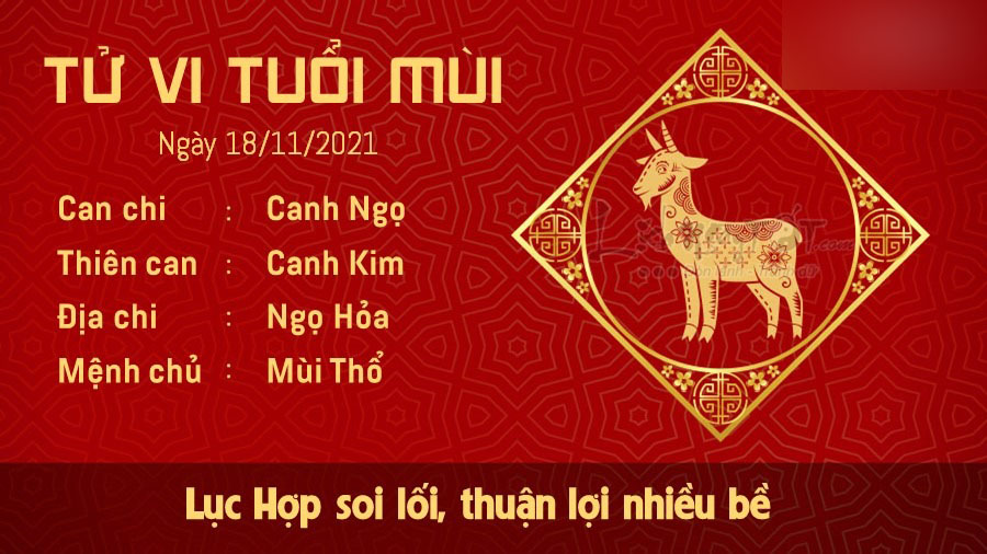 Hôm nay có thể coi là một ngày may mắn với người tuổi Mùi khi được Lục Hợp che chở nên gặp thuận lợi ở nhiều phương diện. Công việc của bạn không có gì phải lo ngại, cơ hội thăng tiến rộng mở nhờ vậy mà tài lộc cũng khởi sắc. Con giáp này hứa hẹn sẽ nhận được nhiều cơ hội để cải thiện nguồn thu của mình trong thời gian ngắn. Người kinh doanh làm ăn cũng đón một ngày vượng tài, buôn may bán đắt. Con giáp này có định hướng kinh doanh đúng đắn, hợp tác đúng người nên mọi việc suôn sẻ, mang lại nguồn lợi nhuận khá lớn, đủ để bản mệnh tiếp tục mở rộng quy mô kinh doanh trong thời gian tới. Thổ được Hỏa sinh, con giáp này còn đón nhận nhiều tin vui trong chuyện tình cảm. Tình yêu của bản mệnh và đối phương ngày càng sâu đậm, thăng hoa, có thể tiến thêm một bước tiến mới. Nếu đã chín muồi thì ngại gì mà không bàn tính chuyện trăm năm hạnh phúc.