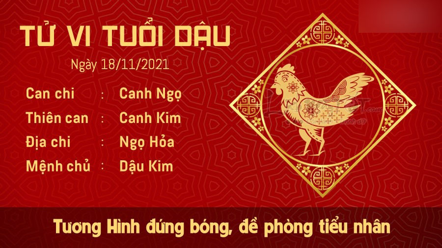 Ngọ Dậu Tương Hình nhắc nhở người tuổi Dậu cần có lòng đề phòng trong công việc vào ngày này. Vận trình của bạn có điềm báo kẻ tiểu nhân hãm hại, nếu con giáp này bất cẩn để lộ điểm yếu của mình ra trước đám đông thì đừng ngạc nhiên khi tai họa ập tới. Bạn cần làm mọi thứ thật chuẩn chỉnh và hoàn thiện để hạn chế rắc rối. Tài lộc trong ngày có Kiếp Tài nhập cục cũng khó giữ được trong túi. Không phải bản mệnh yếu kém không kiếm được mà tiền vừa về tới tay đã đánh mất. Bản mệnh không tìm được cách nào để cho tài lộc tích tụ, phải chịu cảnh hao tài tốn của. Ngũ hành xung khắc khiến mối quan hệ vợ chồng, lứa đôi thường xuyên xảy ra cãi vã. Tranh cãi để giải quyết vấn đề cũng được nhưng đừng cãi cọ để vấn đề ngày càng trầm trọng hơn. Con giáp này phải biết mình muốn gì, kiểm soát cảm xúc tốt hơn, đừng để bản thân tự đạp đổ hạnh phúc và những gì mình đang có.