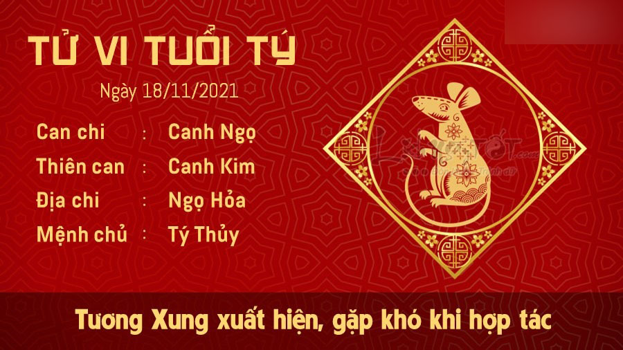 Tương Xung cho thấy người tuổi Tý gặp nhiều khó khăn trong việc hợp tác với người khác. Bạn có chính kiến của riêng mình và không dễ dàng chấp nhận nghe theo ai. Đối phương vậy, sự cố chấp của đôi bên khiến tình hình trở nên căng thẳng. Ngày này, vận may không có nhiều nên trước khi đưa ra bất kì quyết định nào, bản mệnh cần phải suy nghĩ thật thận trọng. Tuy nhiên cũng đừng vì thế mà ngần ngại không dám hành động. Nếu như vậy bạn sẽ bỏ lỡ cơ hội tốt đến với mình. Thủy – Hỏa xung khắc khiến chuyện tình cảm có chút trục trặc, nguyên nhân chính vẫn là do cả hai bạn quá tất bật với công việc cũng như theo đuổi niềm đam mê riêng. Nếu bớt chút thời gian quan tâm tới đối phương, mâu thuẫn to hóa nhỏ, nhỏ hóa thành không có.
