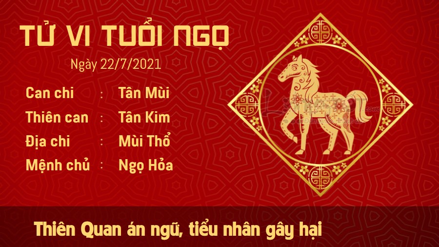 Tuổi Ngọ chịu nhiều tác động tiêu cực trong ngày có Thiên Quan án ngữ trong vận trình. Điềm báo tiểu nhân gây hại khá rõ, bản mệnh cần thận trọng với mỗi lời mình nói ra trong hôm nay. Họa từ miệng mà ra, vì thế, đừng vì một lời nói bất cẩn mà tự khiến bản thân gặp khó khăn trong việc gắn kết những mối quan hệ quan trọng tại nơi làm việc. Ngày hôm nay việc hợp tác làm ăn, kinh doanh của con giáp này cũng có thể gặp một vài trục trặc nhất định. Đôi bên có thể không hiểu ý nhau dẫn đến những khúc mắc trong quá trình hợp tác. Một khi lòng tin bị lung lay sẽ ảnh hưởng rất lớn đến việc làm ăn chung của cả hai. Ngũ hành tương sinh giúp cho tình cảm êm ấm là điểm sáng duy nhất trong ngày.