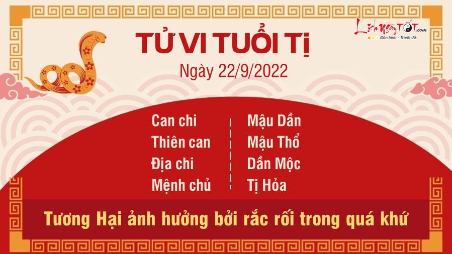 Dần Tị Tương Hại bạn không nên để các vấn đề rắc rối trong quá khứ ảnh hưởng đến hiện tại. Trong đời sống tình cảm, nên chú ý đến áp lực tài chính, cùng nhau đối mặt với khó khăn. Hãy học cách nhận lỗi thay vì chăm chăm đổ lỗi cho người khác. Thiên Ấn tương trợ cũng là lúc con giáp tuổi Tị cần tập trung hơn cho các nhiệm vụ mà bản thân đề ra khi mà có sự hỗ trợ của mọi người. Bạn có thể xem xét và sắp xếp lại các đầu việc cần xử lý. Ngũ hành tương sinh mang lại cơ hội để kiếm tiền, có thể mọi thứ có chút khó khăn ban đầu nhưng bạn cứ kiên nhẫn. Hãy nỗ lực hết sức mình vì biết đâu thu nhập của bạn sẽ được nhân đôi.