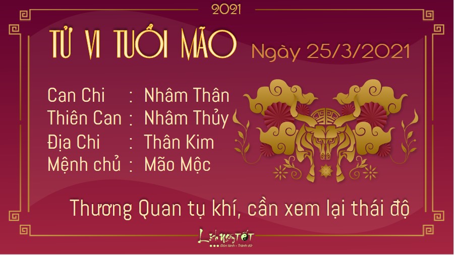 25/03/2021 13:00Tử vi thứ 5 ngày 25/03/2021 của 12 con giáp: Sửu có cơ hội, Mão nên xem lại thái độ