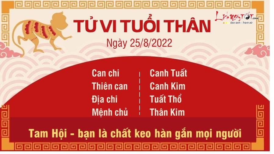 Tam Hội khuyên tuổi Thân nên về với gia đình, bạn là chất keo hàn gắn mọi người, đóng vai trò như một sứ giả hòa bình vậy. Những ai còn độc thân có lẽ cần dành thời gian tìm hiểu chính mình lâu hơn chút nữa. Do Tỷ Kiên nên con giáp tuổi Thân có thể trở nên vô cùng thẳng thắn với những nhận xét của mình. Vì thế, nếu bạn đang có những nỗi lòng khó nói thì đây là thời điểm để bạn giải tỏa chúng. Tuy nhiên, chớ nên gay gắt trong lúc thể hiện những suy nghĩ của mình. Thổ - Kim tương sinh cho thấy về mặt tình cảm, đây là lúc bạn có thể trông cậy vào đối phương và cùng nhau thực hiện một dự án của cả hai. Tuy nhiên, bạn sẽ cần làm rõ về trách nhiệm và nghĩa vụ của hai người để tránh những cuộc tranh cãi không đáng có trong tương lai.