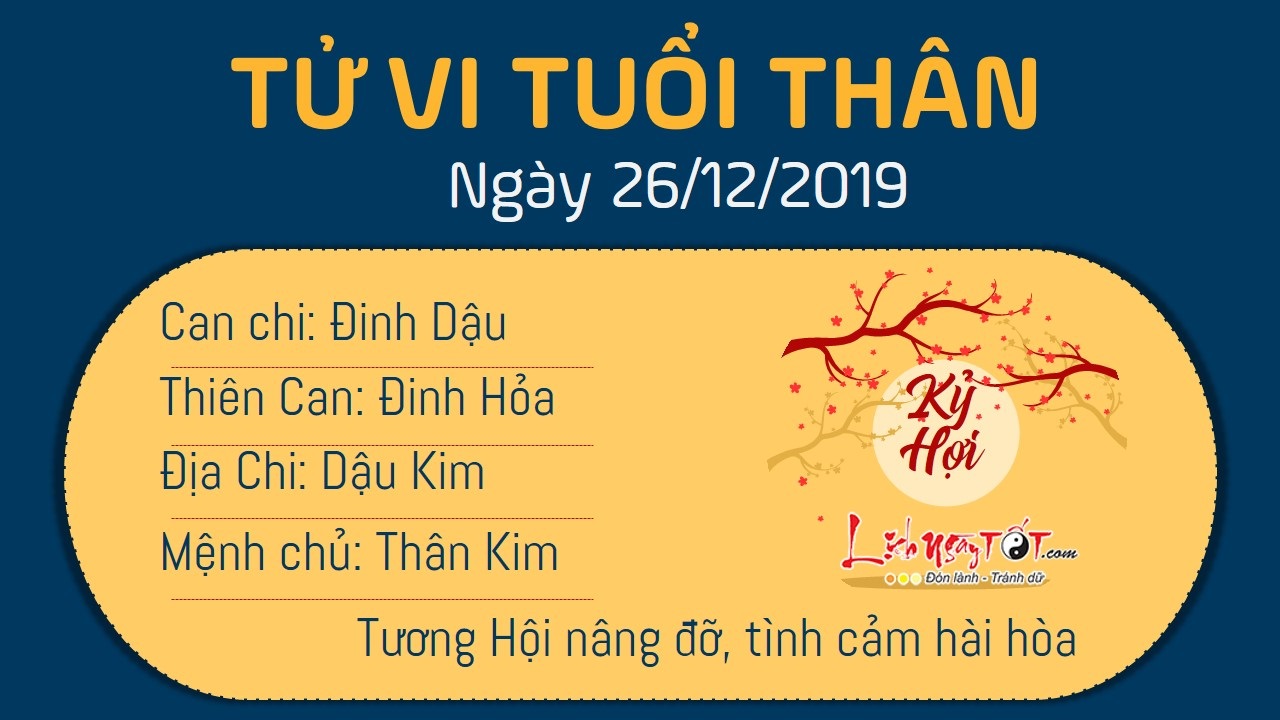 Tử vi ngày 26/12/2019 tức ngày 01/12 theo lịch âm năm Kỷ Hợi của 12 con giáp: