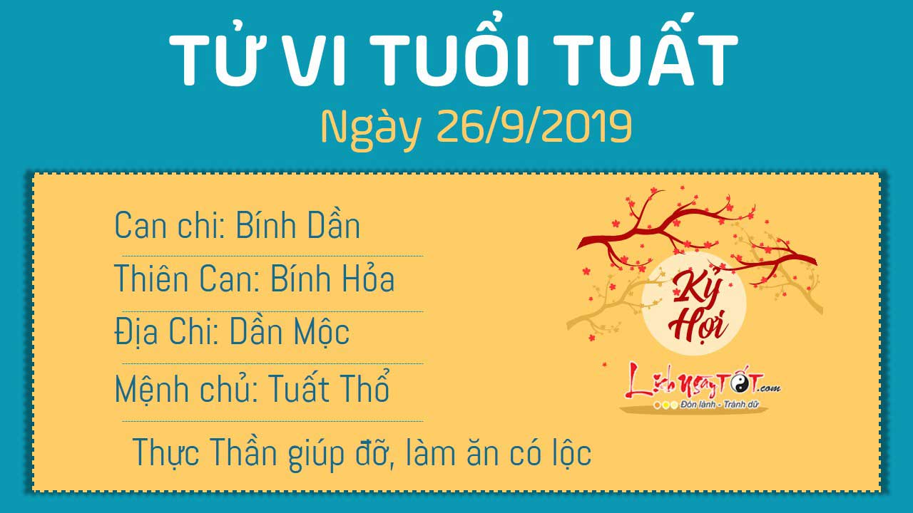 Thực Thần chiếu mệnh, người tuổi Tuất làm ăn có lộc trong ngày hôm nay. Không nên chần chừ, do dự trước những cơ hội đầu tư, kinh doanh quá lâu. Hãy quyết đoán nắm bắt, bạn chắc chắn sẽ thu được lời lãi trong nay mai. Bạn là người ôn hòa và rộng rãi, tuy nhiên, trong lĩnh vực chi tiêu, bạn cần phải lập những kế hoạch rõ ràng và cụ thể hơn. Nếu cứ chi tiêu bừa bãi thì dù có kiếm được tiền trăm bạc triệu, một ngày nào đó cũng sẽ hết thôi. Mộc khắc Thổ, bản mệnh cũng dễ xảy ra tranh cãi nảy lửa với nửa kia của mình.