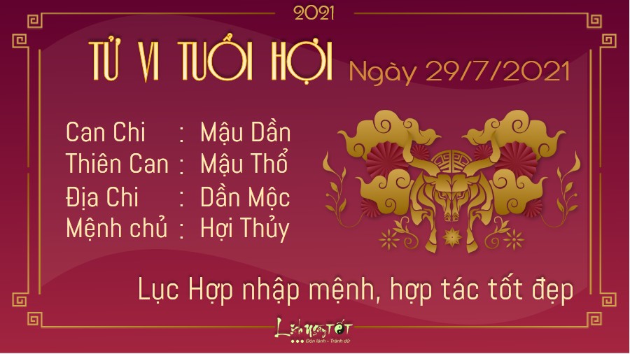 Lục Hợp nâng đỡ, người tuổi Hợi có quý nhân đồng hành nên nhận nhiều tin vui tài lộc. Ngày này, bạn có thể tìm về những cơ hội hợp tác làm ăn hết sức thuận lợi. Bản mệnh may mắn gặp được đối tác phù hợp, bổ khuyết cho nhau, cùng nhau phát triển. Vốn dĩ tuổi Hợi đôi lúc có phần thiếu quyết đoán khi đứng trước những quyết định quan trọng, chính vì thế, việc lựa chọn người hợp tác là điều vô cùng quan trọng. Cả hai sẽ hỗ trợ nhau kịp thời và đem lại lợi nhuận chung cho cả đôi bên. Thủy sinh Mộc còn mang tới đường tình duyên thắm sắc, bản mệnh gặp thuận lợi trên con đường tìm kiếm 1 nửa cho mình, dễ dàng được người yêu kẻ mến.