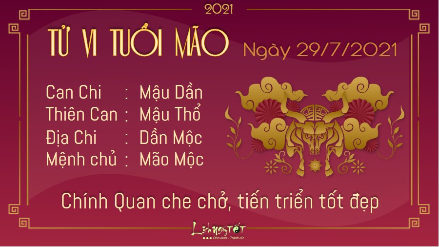 Chính Quan nâng mệnh, công việc của người tuổi Mão đang tiến triển tốt. Bản mệnh dù gặp không gặp khó khăn nhưng vẫn cố gắng hết mức để xoay chuyển tình thế, có trách nhiệm với công việc mình được giao. Bạn đang đi đúng đường đúng hướng, nhờ thế mà con đường sự nghiệp càng ngày càng thăng hoa, được cấp trên ưu ái. Có thể nói hôm nay là ngày rất may mắn với người tuổi này. Tuy nhiên bản mệnh cũng nên khiêm tốn, khiêm nhường ham học hỏi mới có thể học được thêm nhiều điều hay và càng có cơ hội gặp quý nhân, tiếp sức cho con đường thăng tiến được nhanh hơn. Mộc khí vượng, hôm nay sức khỏe của con giáp này có thể vì thế mà chịu nhiều ảnh hưởng.