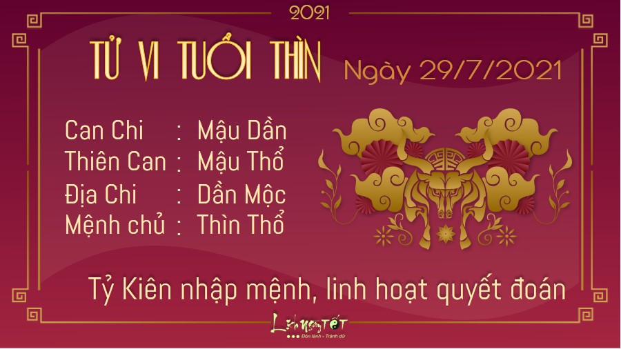 Tỷ Kiên mang tới cho người tuổi Thìn sự linh hoạt và quyết đoán trong công việc. Có những lúc sự cứng nhắc sẽ khiến bạn mất đi cơ hội để thể hiện tốt năng lực của mình và thuyết phục cấp trên về khả năng thăng tiến, nhưng hôm nay bạn đã khắc phục được yếu điểm này một cách ngoạn mục. Bản tính của những chú Rồng là sự tự tin, nhanh nhẹn, tháo vát, lại thích nghi nhanh nên chỉ cần điều chỉnh bản thân một chút, mọi khó khăn đều có thể được giải quyết dễ dàng. Tuy nhiên, ngày Mộc – Thổ xung khắc sẽ gây ra những bất đồng trong mối quan hệ tình cảm của người tuổi Thìn. Vợ chồng dễ nảy sinh tranh chấp, cãi vã vì những vấn đề nhỏ nhặt của cuộc sống cơm áo gạo tiền.