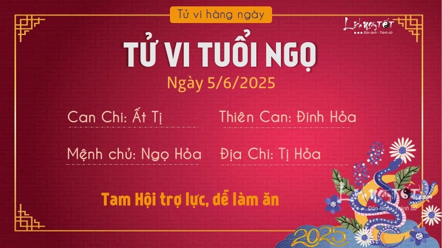 Tam Hội trợ lực, Ngọ tràn đầy đam mê và đủ can đảm để đổi mới và chấp nhận thử thách. Nhờ có sự giúp đỡ của quý nhân, hôm nay cũng là ngày tốt để giải quyết mâu thuẫn, xung đột trong công việc hiện tại.