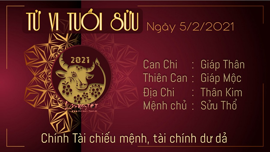Chính Tài chiếu mệnh vào ngày hôm nay chứng tỏ người tuổi Sửu sẽ có tài chính ổn định. Cho dù công việc hiện tại của bạn có mức lương cao hay thấp thì chỉ cần bạn chi tiêu hợp lý, chú ý tiết kiệm thì không sợ thiếu tiền tiêu. Một số người làm công ăn lương hoặc làm ăn buôn bán có thể nhận được một khoản kha khá xứng đáng với công sức lao động. Thời điểm này, bạn nên suy xét cẩn thận trước khi tiến hành đầu tư hoặc kinh doanh. May mắn hơn nữa, ngũ hành Thổ sinh Kim cho thấy người độc thân dễ dàng tạo được ấn tượng tốt đẹp với người khác phái. Cuối năm có nhiều dịp giao lưu gặp gỡ, hãy tự tin thể hiện cá tính rồi mọi người sẽ nhận ra sức hấp dẫn của bạn.