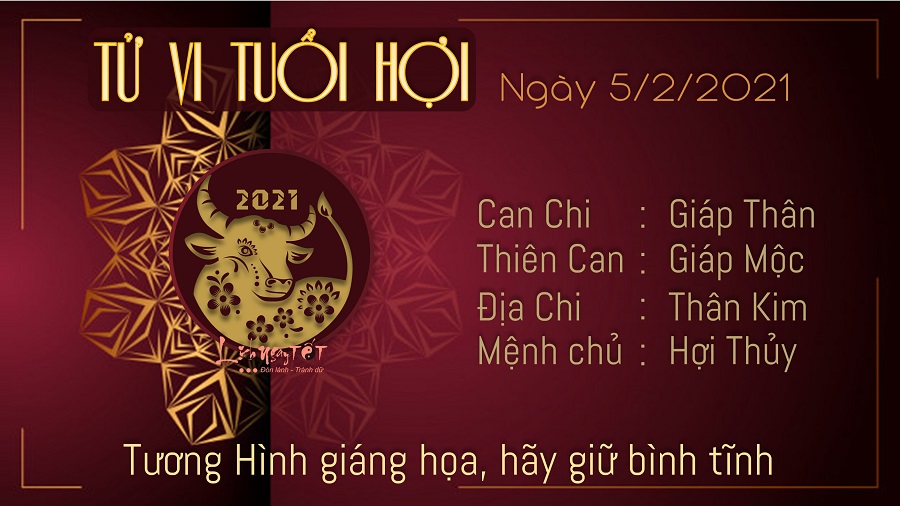 Tương Hại giáng họa khiến tuổi Hợi vướng phải nhiều chuyện rắc rối, do có kẻ tiểu nhân xuất hiện ném đá giấu tay. Tuy nhiên, bạn cần nhắc nhở bản thân mình bình tĩnh, bởi càng nóng nảy, mất bình tĩnh thì bạn lại càng dễ rơi vào bẫy. Trong công việc, tâm tính dễ bị kích động sẽ dẫn bạn đến những quyết định sai lầm. Trước khi bắt tay vào một việc gì, bạn không nên quá mức độc đoán, chỉ làm theo ý mình mà nên thử thảo luận, trao đổi với những người giàu kinh nghiệm hơn. Kim sinh Thủy, nửa kia chính là một chỗ dựa tinh thần rất vững vàng cho bạn. Nếu có điều gì khiến bạn khó xử, hãy trò chuyện với người ấy, rất cói thể hai người cùng trao đổi, bàn luận thì sẽ tìm ra một giải pháp thích hợp.