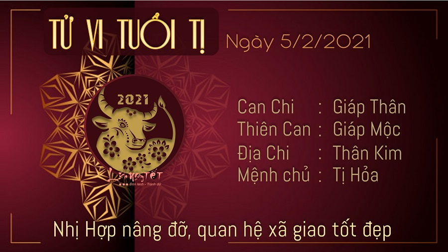 Nhị Hợp phù trợ, người tuổi Tị nhanh chóng nắm bắt được vấn đề mà cấp trên giao phó. Đồng thời, bạn cũng là người khiêm tốn, chịu khó thu ý kiến đóng góp của mọi người xung quanh. Trong cuộc sống, có thể bạn là người rất hăng hái giúp đỡ người khác, cho dù đối phương có bày tỏ mong muốn của mình hay không. Nhờ thói quen giúp đỡ vô tư, đừng so đo thiệt hơn, bạn xây dựng được những quan hệ xã giao tốt đẹp. Hỏa khắc Kim, có vấn đề xảy ra trong mối quan hệ gia đình của bản mệnh. Vợ chồng bạn liên tiếp chiến tranh lạnh vì những quan điểm bất đồng. Những lúc thế này, hai người lại càng cần phải bình tĩnh ngồi lại và trò chuyện với nhau.