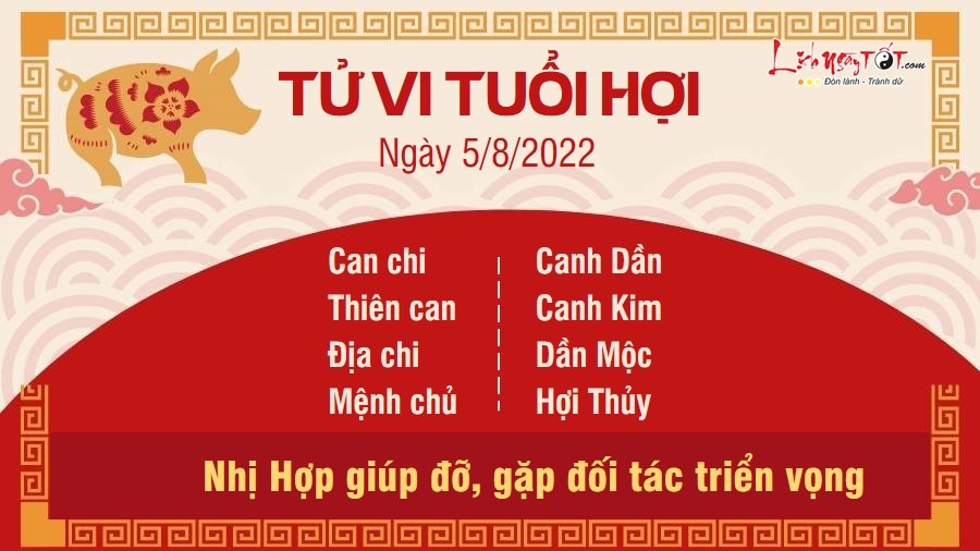 Nhị Hợp giúp người tuổi Hợi có một ngày làm việc gì cũng thuận lợi. Với người làm ăn, bạn làm quen được với đối tác triển vọng, thậm chí đối phương còn là người giúp bạn kiếm về nguồn lợi nhuận lớn hơn dự kiến. Với người làm công ăn lương, bạn có cách tiếp cận vấn đề mới mẻ, khiến những nhiệm vụ tưởng chừng lặp đi lặp lại cũng trở nên thú vị hơn. Con giáp này còn truyền cảm hứng cho mọi người xung quanh, khiến công việc của tập thể tiến triển suôn sẻ. Thai thần ở hướng chính Bắc phía ngoài phòng giã gạo, nơi xay bột và nhà bếp. Do đó, thai phụ không nên lui tới tiếp xúc nhiều, dịch chuyển vị trí đồ đạc, tiến hành các công việc sửa chữa đục đẽo ở nơi này. Bởi việc làm đó có thể làm động Thai thần, ảnh hưởng đến cả người mẹ và thai nhi.