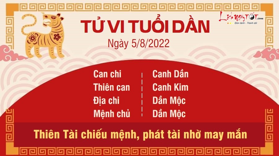 Thiên Tài chiếu mệnh, người tuổi Dần có cơ hội phát tài chỉ dựa vào may mắn trong thời điểm này. Khi cầm trong tay khoản tiền từ trên trời rơi xuống, bạn cần có cách chi tiêu hợp lý, nếu không "của thiên" cũng sẽ "trả địa" thôi. Với người làm công việc tay trái, bạn cũng sẽ nhận được khoản thù lao kha khá. Đây là khoản tiền hoàn toàn xứng đáng với những cố gắng bạn đã bỏ ra. Con giáp này có thể tự thưởng cho mình để khích lệ tinh thần. Tuy nhiên, Mộc vượng khuyên bạn dù có tinh thần làm việc hăng say đến mấy, bạn cũng nên chú ý đến sức khỏe. Hãy có chế độ làm việc và nghỉ ngơi khoa học, đừng nên bắt cơ thể làm việc quá sức, nếu có dấu hiệu cảnh báo thì cần đi khám chữa ngay.