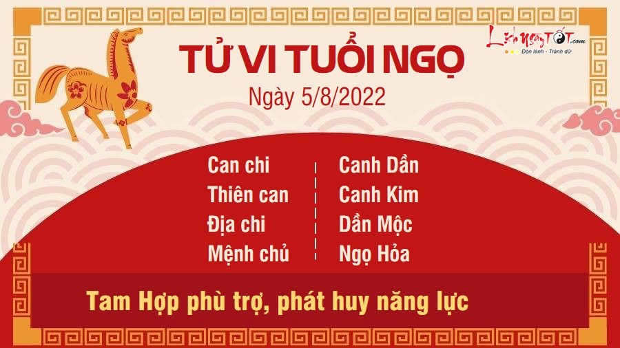 Tam Hợp phù trợ, người tuổi Ngọ phát huy được năng lực của mình và khiến mọi người xung quanh đều phải ngạc nhiên. Thậm chí, cấp trên cũng phải nhìn bạn bằng đôi mắt khác xưa và sẵn sàng trao cho bạn cơ hội khẳng định vị thế. Tuy nhiên, dù gặt hái được thành công, bạn cũng chớ nên kiêu ngạo. Hãy tiếp tục tích cực học thêm kiến thức trong sách vở, trong thực tế và qua mọi người xung quanh, chắc chắn bạn sẽ còn tiếp tục hoàn thiện được bản thân và trở nên tài giỏi hơn nữa. Mộc sinh Hỏa, những người còn độc thân rất đào hoa trong ngày hôm nay. Nhờ bản tính hài hước của mình mà bản mệnh dễ nhận được sự chú ý của những người khác phái. Đây là cơ hội tốt để mở rộng mối quan hệ của mình và tìm kiếm nửa kia phù hợp.