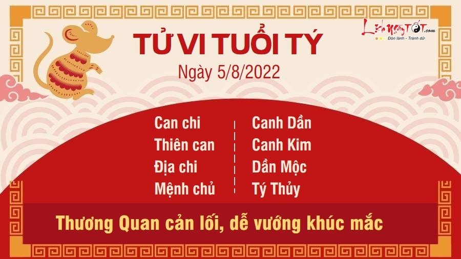 05/08/2022 13:00Tử vi thứ 6 ngày 05/08/2022 của 12 con giáp: Tý khúc mắc, Dần phát tài