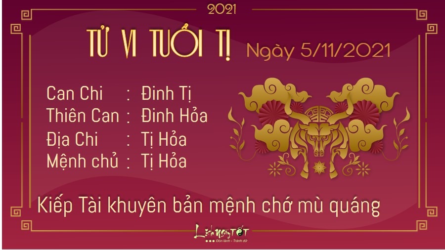 Kiếp Tài như truyền thêm động lực cho người tuổi Tị, khiến bạn trở thành một người mạnh mẽ, kiên định hơn với các quyết định của mình. Bạn có thể tiếp tục công việc mà không cần đến sự giúp đỡ của bất cứ ai, nhưng đừng vì thế mà biến mình thành người cố chấp mù quáng nhé. Một số người có thể gặp phải mâu thuẫn với bạn bè, đồng nghiệp trong ngày hôm nay. Bạn cần học cách lắng nghe mọi người xung quanh nhiều hơn, không nên khăng khăng với suy nghĩ của mình. Có thể bạn đang không nhận ra vấn đề đấy. Thai thần ở hướng chính Đông phía ngoài phòng giã gạo, nơi xay giã bột và cửa phòng thai phụ., không nên lui tới tiếp xúc nhiều ở nơi này.
