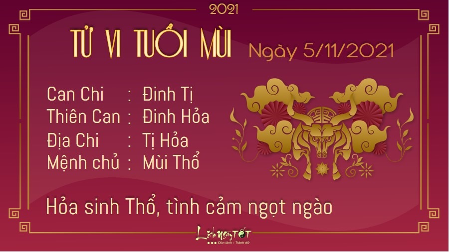 Hỏa sinh Thổ, người tuổi Mùi được đón một ngày hạnh phúc. Mối quan hệ giữa người độc thân và người bạn thầm mến ấm lên nhanh chóng. Hai người thường xuyên trò chuyện, tâm sự với nhau. Với người đã có đôi có cặp, bạn và người ấy có cơ hội hóa giải hiểu lầm, mối quan hệ lại ngọt ngào như xưa. Trải qua biến cố, hai người lại càng thấy thấu hiểu và trân trọng nhau hơn. Bạn cũng học được cách hạ cái tôi của mình xuống. Trên phương diện tài lộc, Thực Thần mang đến cơ hội làm giàu cho những người làm nghề tự do. Bạn được chạm tay vào những cơ hội làm ăn đáng quý, hãy tự tin nắm bắt, bạn có thể thu hồi vốn ngay trong ngày hôm nay.