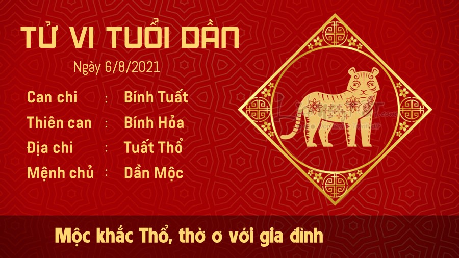 Mộc khắc Thổ khuyên người tuổi Dần cần phải dành nhiều thời gian bên gia đình hơn. Công việc quá bận rộn khiến bạn trở nên thờ ơ với những người luôn chờ đợi mình ở nhà, khiến tình cảm giữa các thành viên dần trở nên lạnh nhạt. Ở môi trường làm việc, bản mệnh khó được lòng người khác bởi cái tính cao ngạo và cố chấp, thích làm theo ý mình. Hãy khiêm tốn lắng nghe ý kiến của bạn bè, đồng nghiệp, có thể bạn sẽ tìm thấy những ý kiến hay đáng để học tập hoặc một hướng đi thích hợp để giải quyết vấn đề đang bế tắc. Nếu có việc cần xuất hành trong ngày hôm nay, bản mệnh đi theo những hướng Tây Nam để gặp Hỷ thần hoặc hướng Đông để gặp Tài thần để làm việc thuận lợi hơn.