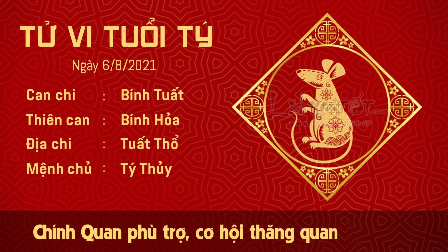 Chính Quan đem lại cơ hội thăng quan tiến chức cho người tuổi Tý. Nếu bạn đã cố gắng không ngừng nghỉ trong suốt khoảng thời gian qua, ngay cả khi mọi người xung quanh đều muốn ngơi nghỉ thì đây là lúc công lao của bạn được ghi nhận. Lãnh đạo sẽ dành tặng cho bạn một phần thưởng xứng đáng. Khi đã nhận được sự tin tưởng và đánh giá cao của mọi người, bạn hãy tự tin hơn nữa và tiếp tục phát huy điểm mạnh của bản thân. Đừng vội hài lòng với những gì mà mình vừa giành được, nếu không bạn sẽ rơi vào tình trạng giậm chân tại chỗ. Thổ khắc Thủy cho thấy những mâu thuẫn, xung đột trong mối quan hệ giữa con giáp này và nửa kia rất có khả năng xảy ra trong ngày hôm nay.