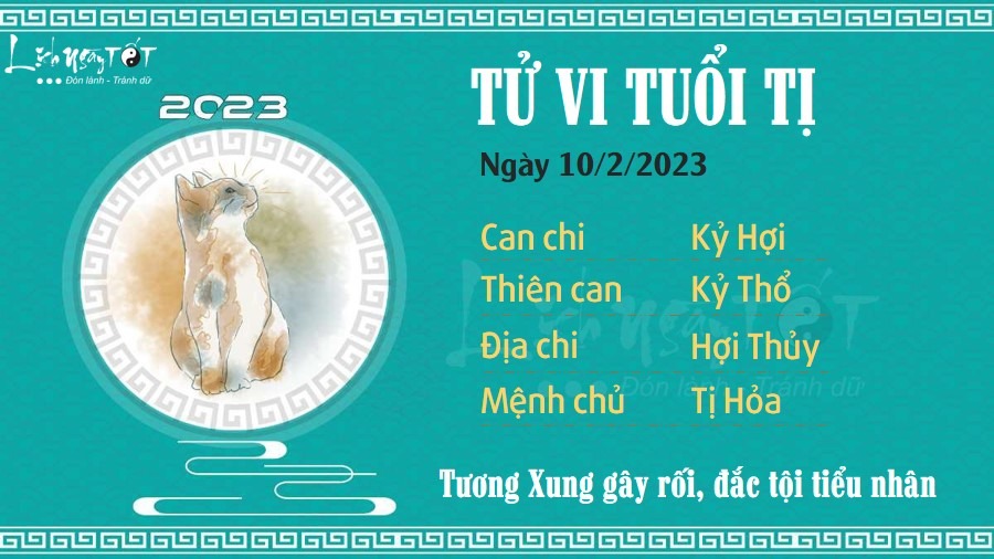 Dưới tác động xấu của cục diện Tương Xung, người tuổi Tị dễ vướng phải cảnh mâu thuẫn với mọi người. Thậm chí, bạn có thể đắc tội với kẻ tiểu nhân từ lúc nào không biết. Việc kí kết hợp đồng làm ăn kinh doanh cũng cần hết sức cẩn thận trong ngày hôm nay. Bản mệnh nên xem xét kĩ lưỡng mọi điều khoản có trong hợp đồng, tránh lơ là tạo lỗ hổng cho kẻ xấu lợi dụng. Thủy khắc Hỏa, quan hệ giữa bạn và người ấy không mấy yên ấm. Có lẽ hai người đều cần phải có một khoảng lặng để suy nghĩ về những gì đã qua và những gì sẽ phải đối mặt. Đừng cố tình lờ đi những dấu hiệu bất ổn xuất hiện trong mối quan hệ.