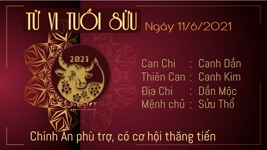 Chính Ấn phù trợ mở ra cơ hội cơ hội thăng quan tiến chức trong ngày hôm nay với người tuổi Sửu. Có thể những cống hiến từ trước tới nay của bạn đã được lãnh đạo nhìn nhận và sẵn sàng cho bạn 1 vị trí cao hơn phù hợp với năng lực. Bạn hãy nghiêm túc lập ra những kế hoạch rõ ràng hơn nữa cho tương lai, đừng vội hài lòng với những gì mà mình vừa gặt hái được rồi lơ là, chủ quan. Với khả năng của bạn, bạn hoàn toàn có thể tiến xa hơn nữa. Đáng buồn, Mộc khắc Thổ cho thấy mối quan hệ giữa bản mệnh và nửa kia không mấy yên ổn. Cả bạn và người ấy đều nên chia sẻ thẳng thắn mọi chuyện với nhau, đừng giữ mọi chuyện trong lòng hoặc đi tâm sự những điều bất mãn với người khác.