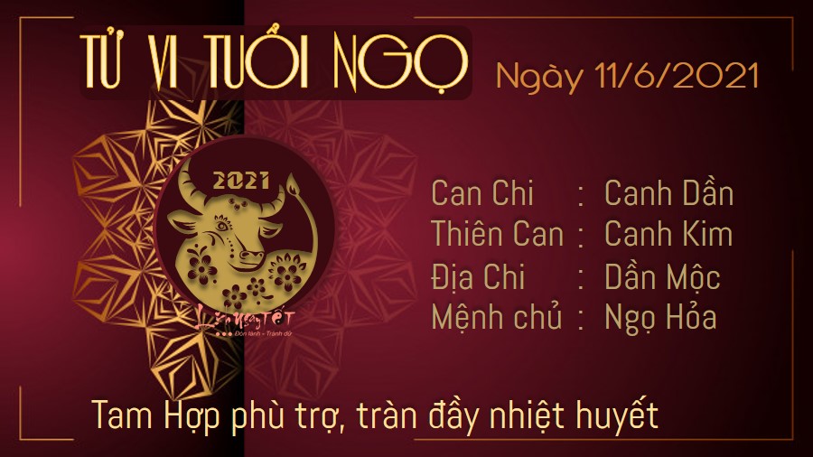 Tam Hợp mang tới những tác động tích cực cho tuổi Ngọ, giúp bạn luôn cảm thấy tinh thần tràn đầy nhiệt huyết. Bạn sẵn sàng bắt tay vào thực hiện mọi nhiệm vụ, cho dù công việc có khó khăn, thử thách hoặc thuộc lĩnh vực hoàn toàn mới mẻ. Tuy nhiên, bạn không nên quá mức nóng vội muốn thể hiện bản thân. Hãy đánh giá đúng tình hình thực tế, suy nghĩ kĩ càng mọi phương diện trước khi đưa ra kết luận hoặc quyết định cuối cùng, đừng biến mình thành người "múa rìu qua mắt thợ". Mộc sinh Hỏa cho thấy những người độc thân có nhân duyên rất tốt với người khác giới. Nếu còn độc thân, bản mệnh có thể có cảm tình ngay với một đối tượng nào đó khi đôi bên còn chưa thực sự hiểu rõ về nhau.