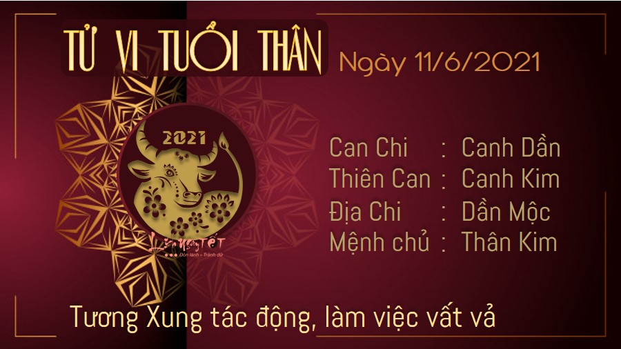 Tuổi Thân sẽ có một ngày làm việc vất vả do phải chịu tác động của cục diện Tương Xung. Bạn chớ nên quá bi quan hoặc chán nản nếu nhận thấy kết quả công việc không được như mong muốn dù đã cố gắng rất nhiều. Trong chuyện tình cảm, con giáp này cũng cần phải quan tâm đến nửa kia của mình hơn chứ không nên dành quá nhiều thời gian cho sự nghiệp hoặc sở thích cá nhân. Tình cảm lứa đôi dần rạn nứt chính vì những hành động vô tình hàng ngày của bạn đấy. Nếu có ý định đi xa trong ngày hôm nay thì bản mệnh nên đi về hướng Tây Bắc để gặp Hỷ Thần hoặc hướng Tây Nam để gặp Tài Thần. Đây là hai hướng sẽ mang lại nhiều may mắn, giúp công việc của bạn thêm phần thuận lợi.