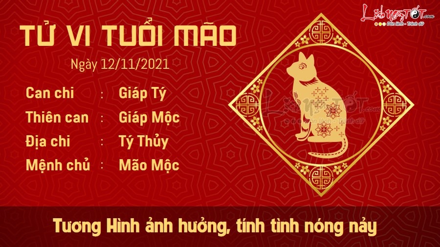 Dưới sự ảnh hưởng của cục diện Tương Hình, người tuổi Mão trở nên nóng nảy, thất thố, không chịu được những ai có ý kiến trái ngược của mình. Bạn sẵn sàng đứng lên phản bác để khẳng định lại quan điểm của bản thân. Tuy nhiên, con giáp này cần phải suy nghĩ kĩ hơn trước khi phát biểu về một vấn đề nào đó, đừng cho rằng luận điểm của mình lúc nào cũng đúng đắn. Có thể người khác đang nhận ra những vấn đề mà bạn không nhìn thấy đấy. Thai thần ở hướng Đông Nam phía ngoài cửa phòng thai phụ và phòng giã gạo (nơi để chày cối giã gạo). Do đó, thai phụ không nên di chuyển vị trí hoặc tiến hành các hoạt động sửa chữa như đục lỗ, đóng đinh, đổi cửa, thay khóa, sơn cửa…