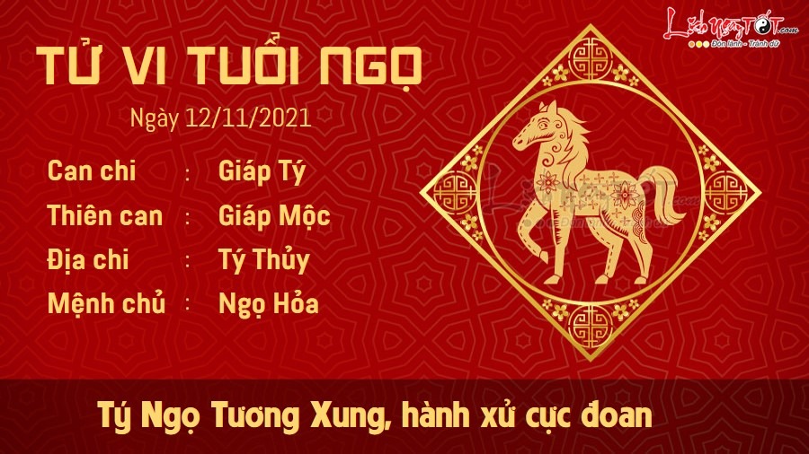 Tý Ngọ tương xung, người tuổi Ngọ có xu hướng hành xử cực đoan trong ngày hôm nay, thậm chí, bạn sẵn sàng trở mặt với những ai có ý kiến trái ngược với mình. Điều này khiến cho mọi người đều ngại hợp tác làm việc cùng với bạn. Con giáp này cần thay đổi cách hành xử của mình nếu muốn cải thiện nhân duyên. Đừng coi việc người khác thực hiện theo ý muốn của mình là việc đương nhiên. Muốn người khác nghe theo, trước hết, bản mệnh cần phải thuyết phục được mọi người đã. Thủy khắc Hỏa, mối quan hệ giữa bản mệnh và nửa kia trở nên căng thẳng vì những ý kiến bất đồng. Tình trạng này không thể kéo dài lâu, nếu không, tình cảm của hai người sẽ rất dễ rơi vào cảnh rạn nứt, tạo điều kiện cho kẻ thứ ba chen chân.