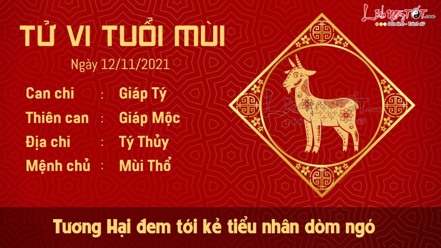 Tương Hại mang tới nhiều tác động xấu cho vận trình của người tuổi Mùi. Ngày hôm nay, bạn bị kẻ tiểu nhân dòm ngó, chọc gậy bánh xe nên làm việc gì cũng không thông thuận, kết quả công việc không như ý muốn. Vì thế, bạn cần phải tự nhắc nhở mình cẩn thận hơn trong mọi việc, ngay cả trong những việc vốn đã rất quen thuộc. Chỉ cần lơ là một chút thôi là bạn dễ để sót những lỗi sai nhỏ bé nhưng gây ảnh hưởng đến toàn cục, thậm chí khiến bạn phải bắt đầu lại mọi việc từ đầu. Thổ khắc Thủy, mối quan hệ giữa bản mệnh và gia đình không được yên ấm. Có thể đôi bên có những ý kiến bất đồng, song không ai chịu lắng nghe ai. Cứ tiếp tục thế này, vấn đề sẽ chẳng thể được giải quyết, mà quan hệ thì càng lúc càng cách xa.