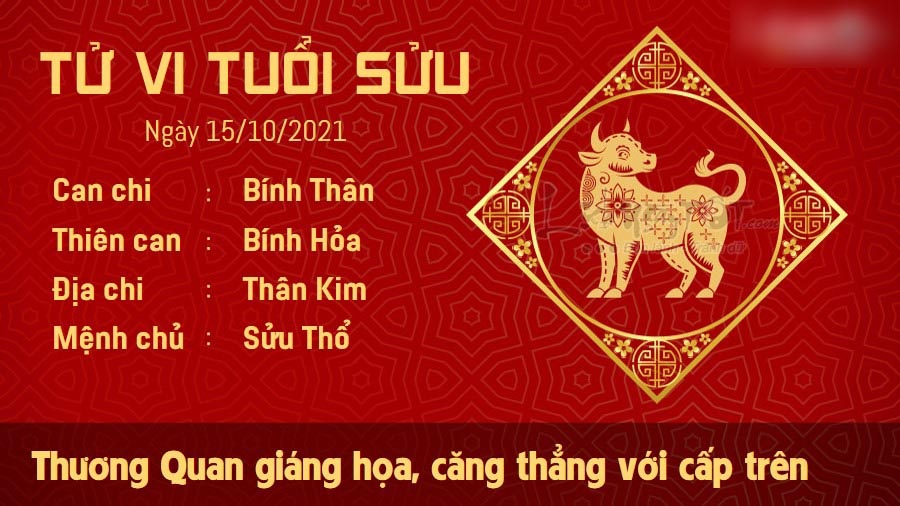 Thương Quan giáng họa, cuộc đối thoại giữa tuổi Sửu và cấp trên có thể dễ dàng trở nên căng thẳng. Nếu không biết kiềm chế, con giáp nóng tính này có thể hành động hoặc nói những lời gây ảnh hưởng đến con đường thăng tiến. Trên phương diện tiền bạc, những người làm trong lĩnh vực đầu tư, kinh doanh cũng cần phải cực kỳ cẩn thận trước khi đưa ra quyết định. Tốt nhất bản mệnh không nên vội vàng kí kết hợp đồng với những đối tác mình chưa thực sự hiểu rõ vào ngày hôm nay. May mắn, trên phương diện tình cảm, Thổ sinh Kim cho thấy người độc thân biết cách thể hiện điểm mạnh của mình nên dễ dàng tạo được ấn tượng tốt đẹp với người khác giới.
