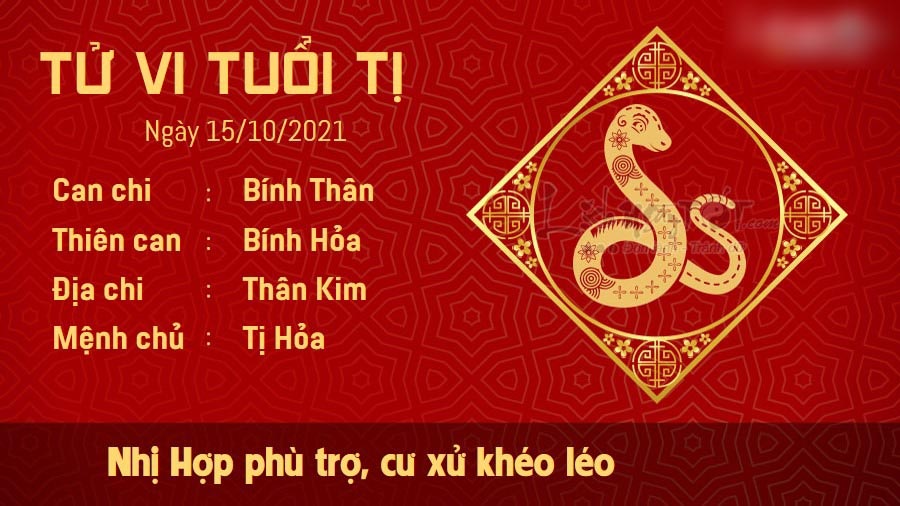 Nhị Hợp đem lại tác động tích cực, tuổi Tị khá nhạy cảm với cảm xúc của mọi người xung quanh. Quan sát thái độ của mọi người, bạn sẽ có cách ứng xử phù hợp để chinh phục lòng người. Trong ngày hôm nay, bạn có thể nhận được lời động viên của bạn bè, đồng nghiệp xung quanh. Vì thế, không lý nào bạn lại chịu đầu hàng trước thử thách cả. Bạn hiểu rằng dù có chuyện gì xảy ra đi nữa, bạn cũng chẳng hề đơn độc. Đáng buồn, dù xã giao thuận lợi nhưng Hỏa khắc Kim lại cho thấy gia đình bản mệnh đang xảy ra vấn đề. Vợ chồng bạn rơi vào cảnh chiến tranh lạnh vì ai cũng cứng đầu cứng cổ, không chịu nhường nhịn nhau. Thực chất, vợ chồng thì không nên so đo thiệt hơn như vậy.
