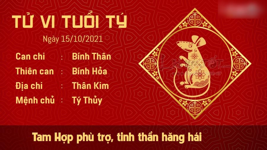 Tuổi Tý cảm thấy vô cùng nhiệt tình và hăng hái khi có Tam Hợp nâng đỡ. Những rắc rối bất chợt xuất hiện không hề khiến bạn nản lòng thoái chí, ngược lại, bạn sẵn sàng là người tiên phong tìm cách giải quyết vấn đề. Bạn hoàn toàn có thể đặt nhiều kì vọng hơn vào sự nghiệp tương lai của mình, bởi bạn không chỉ nhận được sự ngưỡng mộ của đồng nghiệp mà còn được lãnh đạo đánh giá cao. Hãy tiếp tục cố gắng hơn nữa, công lao của bạn chẳng hề uổng phí đâu. Kim sinh Thủy cho thấy bản mệnh có một gia đình rất đầm ấm và hòa thuận. Nếu có thời gian rảnh rỗi, bạn có thể tìm cách hâm nóng tình cảm giữa các thành viên bằng một bữa ăn ngon hoặc đơn giản là cùng xem một chương trình giải trí.