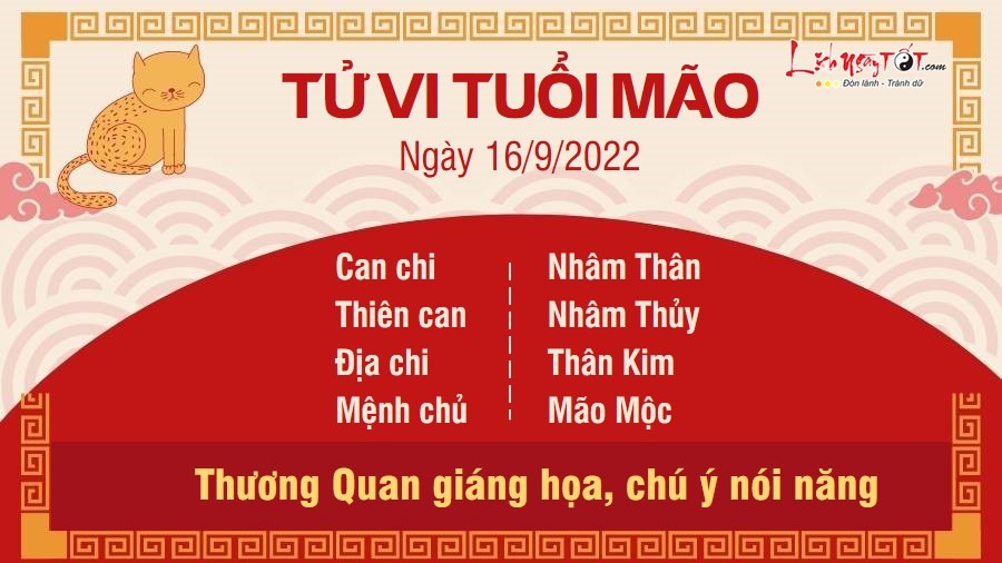 Thương Quan giáng họa, người tuổi Mão trở nên quá mức bộc trực trong ngày hôm nay. Bạn nói năng mà chẳng hề suy nghĩ, chính vì vậy mà bạn thường vô tình làm tổn thương người khác. Cho dù đang là lãnh đạo đi nữa, con giáp này cũng cần đặt mình vào hoàn cảnh của người khác trước khi nói bất cứ điều gì, nhất là khi bạn muốn lên tiếng phê bình một ai đó. Những lời nói quá mức nặng nề sẽ chẳng đem lại hiệu quả tích cực như bạn mong muốn đâu. Hôm nay là ngày 21 âm lịch nhân thần ở ngón chân, tránh mọi sự tổn thương, va chạm, mổ xẻ, châm chích tại vị trí này.