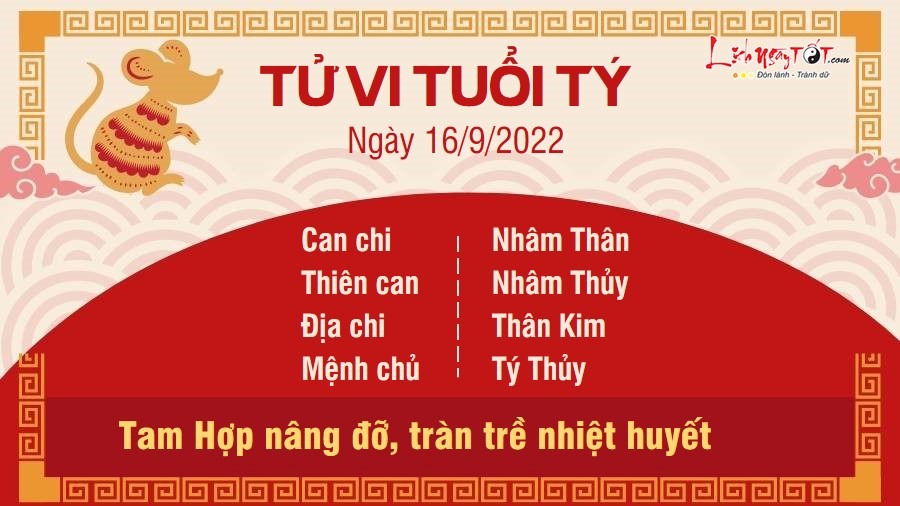 16/09/2022 13:00Tử vi thứ 6 ngày 16/09/2022 của 12 con giáp: Hợi công việc bế tắc, Mùi được người thân giúp đỡ